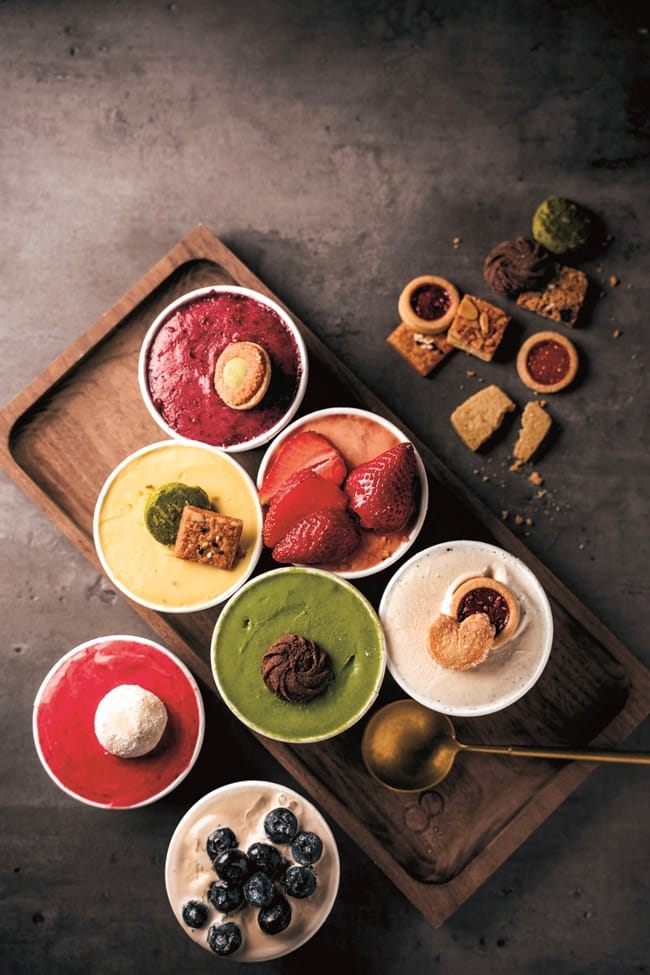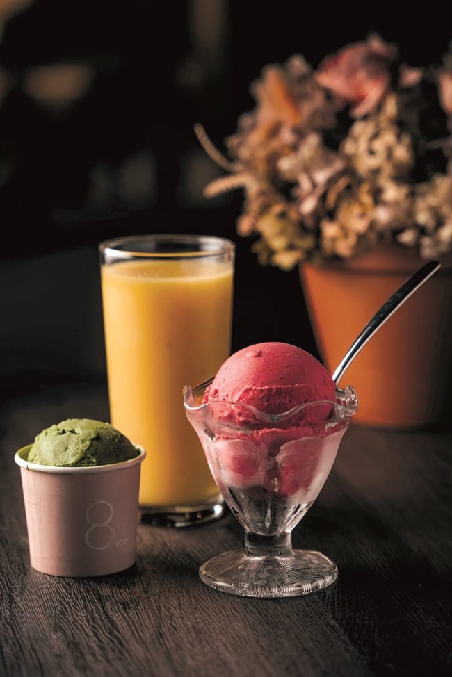 甜點也是「8% Ice CAFE」大受青睞與愛不釋手的美食。法式手工餅乾禮盒,熱銷4、5年,贏得口耳相傳的好口碑,結合法式Isigny奶油與台灣在地的安心蛋品,堅持不用機器,師傅注入手作溫度,精心製成北海道牛奶餅乾、布列塔尼、蝴蝶酥、抹茶脆酥杏仁等16種不同口味的餅乾,每款獨具特色,滿足挑剔的味蕾,當作喜餅或送禮,送禮送到心坎裡。還有店內陳列各式口味的冷藏手工蛋糕,因應季節出品的草莓甜點,不論是外型、色澤,品嘗一口立即著迷,再搭配產自哥倫比亞等地「日光行旅」的手沖精品咖啡,融合核果、柑橘與苦甜巧克力風味,真是絕配。
