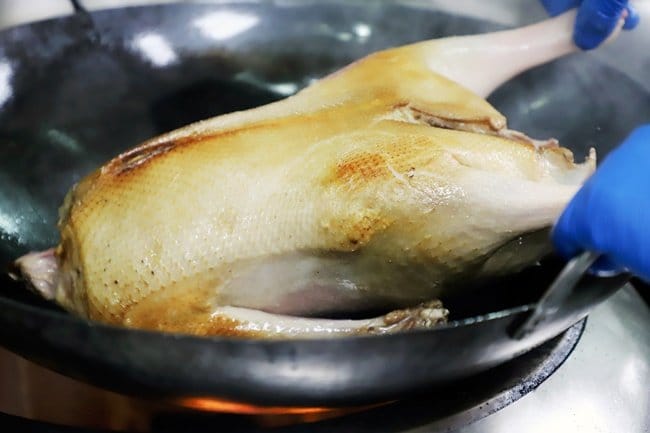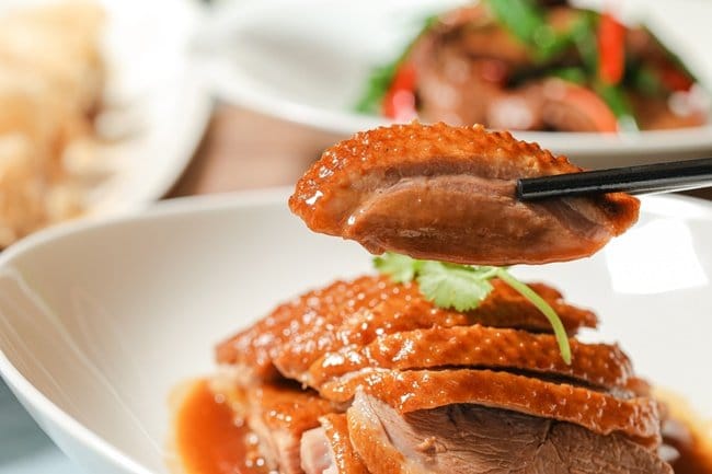由擁有超過三十年粵菜經驗的中餐廚藝總監鄔海明所規劃的「鴨同鵝講」美味集,分別嚴選來自嘉義、帶有黑灰色羽毛的大林黑鵝,以及宜蘭三星鄉的櫻桃谷品種北鴨(簡稱為櫻桃鴨)為主角,前者養殖量少、市場比較少見,最大的特色就是強調以自然放養方式,不施打抗生素,皮薄、肉嫩,口感醇厚。品質精良,有口皆碑的櫻桃鴨則是在清澈的蘭陽溪旁以流水式豢養,每天飲用甘甜的溪水、食用天然的穀物,純淨無汙染的飼育環境造就出肉質細嫩、油脂豐富的高品質。