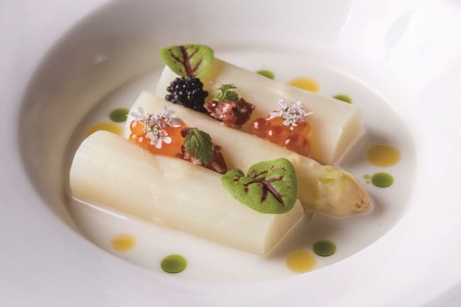 對美食執著與熱愛的副總張東碧Emily說:「我們引以為傲的,是擁有非常多資深並且對料理有熱情的廚師及服務團隊。雖然Hana錵很有歷史,但完全不守舊,師傅經驗豐富卻不墨守成規,更積極創新,時時抱著以客為尊的理念,不斷研發更精緻美味的料理,希望能滿足每一個挑剔的味蕾。」在「Hana錵」時不時會聽到賓客的讚嘆聲「這什麼!太好吃了!」,「這畫面太美!捨不得破壞!」因為餐廳常不惜成本帶來夢幻逸品,像是這一季季節限定的白蘆筍,特選新鮮法國3A級白蘆筍,搭配魚子冷湯作為清爽的開胃前菜,營養價值高,細緻口感更美味。還有A5等級和牛,肥美的鵝肝,Q彈新鮮龍蝦,鮮美北海道干貝,大塊南非鮑魚及現撈的鳳尾明蝦,佐進口松露、魚子醬、起司等奢華食材華麗上演,從前菜、湯品、主餐至甜點或是搭配的餐酒,「Hana錵」從來不會讓饕客失望,是令人想一再回味與想念的銷魂滋味。