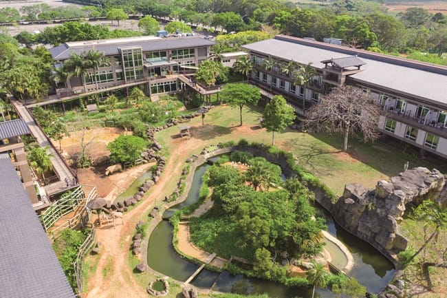 亞洲第一座,也是全台唯一的生態度假旅館,位於新竹縣關西鎮,「關西六福莊生態度假旅館」,161間狩獵風格客房,景觀房內就能看見多種動物,讓住客體會與可愛動物同居同食的特別住宿體驗。每次來都有不同的驚喜發現,館內提供豐富動物生態互動體驗與期間限定動物派對精彩活動,還有主題餐廳、故事遊戲間、主題商店、生態森活館等設施,豐富完整的旅遊服務,帶來與眾不同的精彩度假。