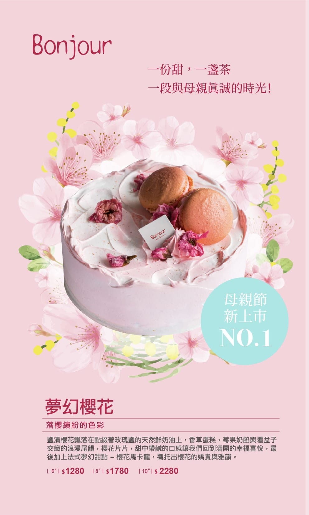 夢幻櫻花採用 #鹽漬櫻花 點綴在 #玫瑰鹽的天然鮮奶油 上, #香草蛋糕,#莓果奶餡 與 #覆盆子 浪漫交織,最後加上法式夢幻甜點 – #櫻花馬卡龍,襯托出櫻花的嬌貴與雅韻。