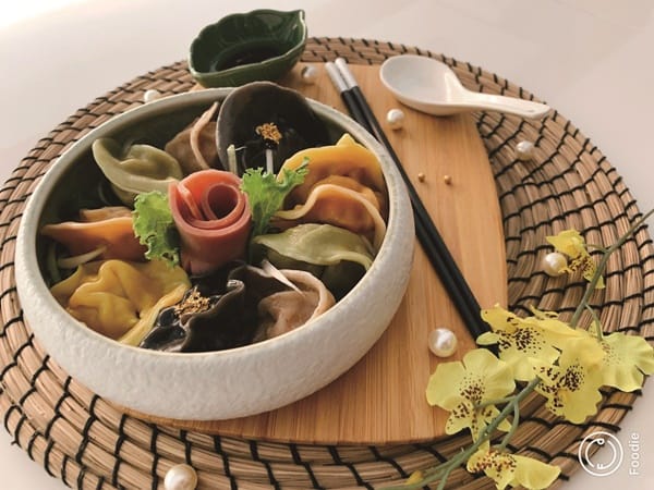 今年還推出「食來運轉五彩餃」,內餡種類包括原味、松露、蔬菜、咖哩、泡菜等五種口 味,更是下足重本,精美擺盤佐以金箔,充分滿足您的視覺、味覺。嘉賓閣二樓餐廳有著絕美窗景,大面觀景窗正對公園,杉樹林立,猶如置身綠蔭之中,泡湯之後享用美食,全身舒暢,樂活愜意!