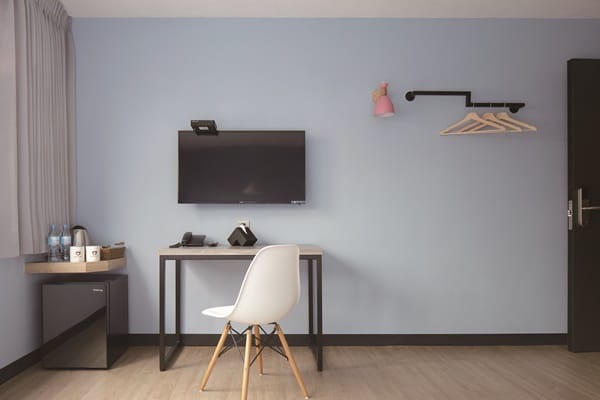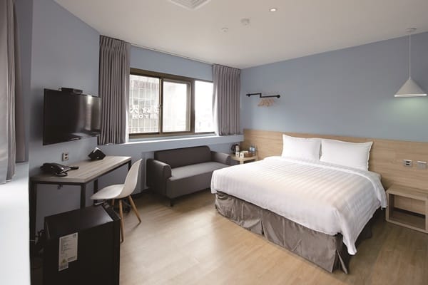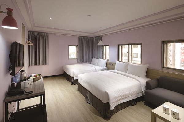 六層樓高的「太子行旅」一共有95間客房,規劃有五種房型,包括雙床/雙人房、豪華雙人房、三人房、家庭房、豪華家庭房,因應旅客人數的需求,房內全套備品、液晶電視、小冰箱、Wi-Fi上網等皆一應俱全,安心、便利無虞。如若是親子旅客,請你一定要入住豪華親子房,內部配置一大床和一小床,而專屬小朋友的小床,更特意設計成木屋模樣,絕對會讓孩子們住得開心!至於只想享受兩人世界的旅人,豪華雙人房便是首選,空間設計簡單純粹,以Tiffany藍或是粉色系為背景牆面,讓人如沐北歐風的自然閑靜;亦有如馬卡龍風格般的優雅房型,再搭配壁上掛衣鐵架、造型家具與燈飾,溫潤木質的床頭背牆,構築舒適浪漫的場域氛圍。除了享受舒適精緻的環境、笑臉迎人的太子熊,以及飯店人員最親切的服務。