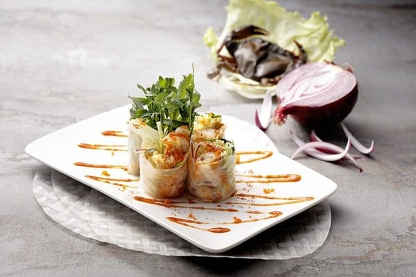MO-MO-PARADISE一向致力於以高品質的食材及服務方式,讓賓客花小錢,享受大服務!本次於經國家樂福牧場限定推出的海鮮一品料理,採用Fine Dining模式,為目前平價吃到飽品牌之首創,除了位上的「炙燒和牛握壽司」,現在更增加每位賓客可於精選菜色中擇一享用,三道菜色包含「唐揚比目魚」將大比目魚以特調醬汁醃漬後,裹上北海道片栗粉炸至金黃,外酥內嫩的口感,另搭配甜香的糯米椒與鮮爽檸檬角,彼此烘襯令人心滿意足;迎接仲夏的「軟殼蟹生春捲」,將酥炸軟殼蟹、芝麻葉、鮮蔬、花生與韓式辣醬一同裹入越南春捲皮中,撒綴蝦卵,多層次的爽脆口感帶點微辛,作為吃鍋後完美的中場轉折,下半場可繼續大嗑和牛肉品;「鱸魚佐蕃茄鮮蔬」將洋蔥、培根、紅黃椒、綠櫛瓜一同拌炒,並加入蕃茄醬燉煮,製成酸甜的蔬菜醬後淋上薄粉油炸的鱸魚,魚肉的鮮美在醬汁的層疊烘托下,盡顯風華。