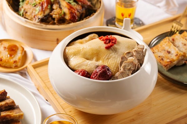 為此,六大星級飯店集結中西大廚,以「養生」為概念,從主食到甜點、精緻且兼具均衡營養!台南老爺行旅推出台式辦桌不可或缺的「蒲燒鰻米糕」,將擁有高含量維生素A、維生素E、蛋白質與胺基酸的鰻魚,與粒粒飽滿的糯米及精選配料,乾蒸再炒,香氣十足的鮮味,口感柔潤馥郁;台南晶英酒店則與醫藥相關學校系產學合作,將漢方藥材、豬腱肉、紅棗、甘草、乾薑等食材,悉心燉煮才成就這道湯鮮料美的粵式「漢方養生雞煲湯」,肉質軟嫩的仿土雞,湯頭回甘鮮美且充滿膠質。