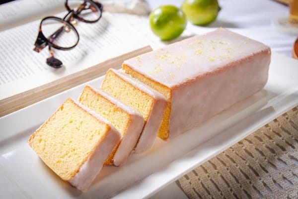 甜點則由台南遠東香格里拉飯店推出銷售排行榜第一名的「老奶奶檸檬磅蛋糕」,這款源自於南法鄉間的家常蛋糕,由主廚嚴選日本上白糖與雞蛋打發,拌入世界盃指定布爾喬亞T55麵粉,加入邦菩禮AOP發酵奶油,最後裹上西西里檸檬糖衣,增添蛋糕整體的層次口感!