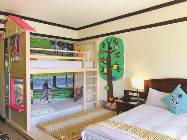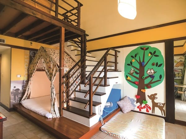 在特色住宿部分,「悠活渡假村」的各式主題房多樣選擇,一打開房門就是驚喜,令人印象深刻。「巧克力主題館」裡的巧克力寶貝房、巧克力樓中樓處處展現我們對巧克力的奇異幻想,帶領大小朋友墜入香醇可口、充滿甜蜜浪漫情懷的巧克力世界中!「兒童主題館」從冒險到幻想,從海洋生物到天空飛行,多種主題設定還有盪鞦韆跟迷你攀岩牆的設定,讓寶貝們玩得不亦樂乎,捨不得離開,而綠色休閒「單車騎士館」的設計更是滿足小朋友們對於旅遊與移動的期待;加上悠活大哥哥大姊姊的現場帶動跳,從飯店大廳到特色遊戲區,每個轉角都有讓小朋友們盡情放電的地方,歡笑聲連連。