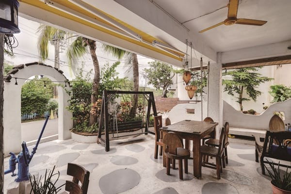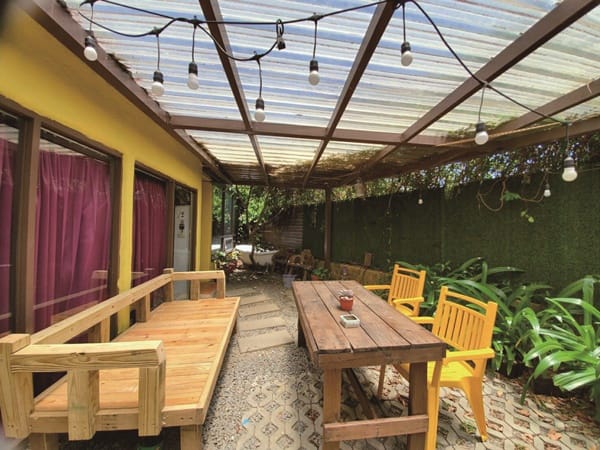 室內分外暇意,戶外也很愜意,一、二館庭院裡提供大型烤肉爐,可以大啖燒肉,尤其到了晚上夜幕低垂,繽紛多彩的燈光亮起,更具異國風情,盛夏的墾丁星空無光害,躺在搖床或閒坐搖椅上,此時涼風徐徐吹來好舒服,欣賞點點繁星更是心滿意足。值得一提,一館院子裡有棵老芒果樹,到了4月中陸續結果、碩大果實累累,民宿主人說歡迎採摘帶走自由享用,二館則是有片綠油油的大草地,小朋友可以自在翻滾跑跳,所以非常適合家族旅行、好友揪出遊,一、二館各自都可全包場,大家難得歡聚一起紓發壓力、情感交流。入住即享有免費現做美式豐富營養早餐,管家很貼心的使用保溫冰桶保溫,從「墾丁愛情海」直接送過來,所以還是熱騰騰的,可以悠哉地在戶外露臺佐美景享用。二館還設有一個戶外吧台區,擺放著泡麵、飲料啤酒等,方便不想出門的房客,主人說這是良心商店,一切自取再投入零錢。