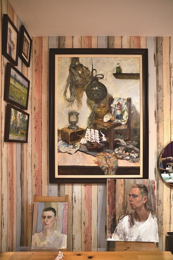 此外,「墾丁牧場Villa」二個館還有一個共通性就是室內空間的牆上幾乎掛滿了畫作、怡情 怡性,大多將墾丁的美景繪入,源自鄔坤宏本 身就是美術科班出身,日常就很喜歡畫油畫,因此將民宿也定位是畫家的寫生基地,歡迎畫家來這長住專心畫畫,到附近寫生,平日及淡季時皆有住宿優惠。