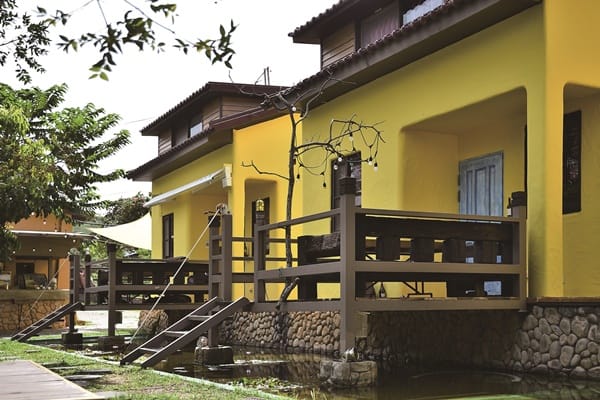 愛你的心,留在牧場Villa,愛家的心,牧場Villa二館。「墾丁牧場Villa二館」是鄔坤宏專為親子家庭、家族旅遊或是三五好友聚會而規劃,有四棟獨立架高的閣樓式木屋,鵝黃色的鮮明外觀,加上屋前下方生態池盛開的香水蓮,第一眼即令人感到心情愉悅,走上樓梯有一個戶外露台,樓梯還可收起來。室內設計為4人房,空間陳設具濃濃美式復古鄉村風、溫馨舒適,閣樓的巧思區隔及斜頂,讓場域變得有意思。衛浴空間寬敞,有淋浴、浴缸,滿足泡澡樂趣。另一間獨立的戀戀星空二人房外觀飾以橙黃色,擁有私人庭院、鞦韆搖椅、雙人露天星空心型浴缸,超讚的是電動開闔天窗,可一邊泡澡,一邊仰望藍天或星空,極致享受!所有房間內皆設有卡拉OK KTV,喜歡唱歌者大聲歡唱也不用擔心打擾他人。
