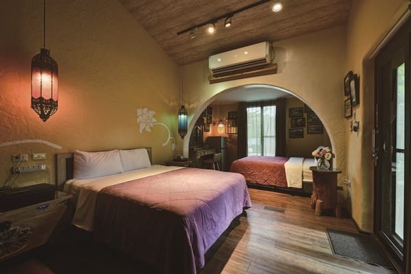 最棒的是每間風格都不一樣,吸引著旅客每一間都想要住看看,想要蒐集12種唯美異國風情。包括有專屬獨立戶外庭園,藍白相間的希臘情調,富神祕慵懶氣息的波希米亞、土耳其、巴里島夢幻情境,具東方特色的上海、日式和風、泰式韻味等,尤其是以整串線簾、花色圖騰的紗簾、蕾絲布幔裝飾,鏡子透映的罌粟花元素,部分房型設置花型或古典浴缸,更是將浪漫指數推向極致,洋溢滿滿幸福氛圍。入住同樣提供免費現做早餐,在一樓餐廳佐美景享用,更棒的是,一樓獨立出入的秘密花園,旅客可以帶著毛小孩或喵星人一起來渡假,很友善寵物族。