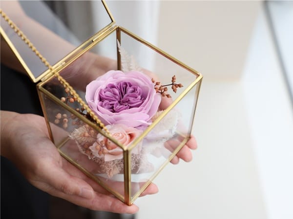 象徵守護之愛的「Love Never End 典藏心意花禮」售價1480元,大大的玫瑰香皂花周圍以小型的永生花點綴,配上金邊花器代表著守護珍貴情感,小巧精緻的尺寸適合放置於茶几、辦公桌及床頭等各種位置,隨時看到都會想起送禮的人,讓心意傳送更有意義。即日起至8月5日前預訂,兩款七夕花禮皆可享早鳥優惠9折。
