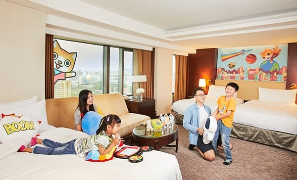 除此之外,飯店客房更增設「小猫巴克里」六大主題房型,包含「香格里拉風」、「野餐風」、「田園風」、「太空風」、「海洋風」及「渡假風」,繽紛活潑的場景與佈置,孩子立即置入故事情境,爸爸媽媽們渡假中也能放下手機,共同創造親子旅行美好的回憶。