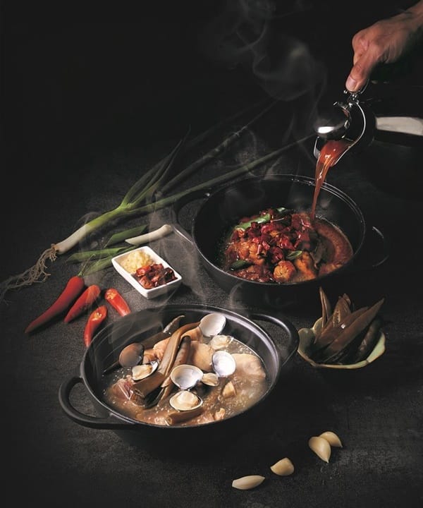「尬鍋」5月份開幕,讓愛鍋成癮的民眾讚譽有加,最受歡迎的鍋物首選金熬剝皮辣椒雞+雪花牛肉鍋:剝皮辣椒與跟雞湯的組合,微辣甘甜的口感夏天吃最開胃!而吸足剝皮辣椒湯底的雞肉咬起來回甘涮嘴;再用剝皮辣椒雞湯涮煮雪花牛肉片與蔬菜鍋料,暖心療癒,尾韻清新微辣,讓人欲罷不能。