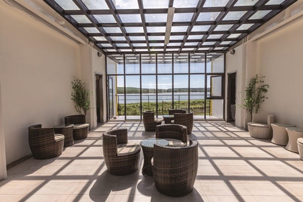 彎進一條小路,映入眼簾是一棟純白、鮮黃相間的建築物,還有一隻很Q萌帶著墨鏡的熊矗立在前,初見「戀戀星辰湖畔莊園-星光館」,使人心情愉悅,這裡也是此度假區距離龍鸞潭最近,唯一一棟的旅宿。走進寬敞大廳,南洋風的陳設洋溢自然休閒風格。旅宿把公共區域留給旅客,於每層樓中間規劃公共的交誼空間,隨著光影自在灑落,欣賞更大尺度的湖景景致,透過大面玻璃黑色的邊框,彷彿框住一幅幅如詩如畫般的景色令人陶醉。