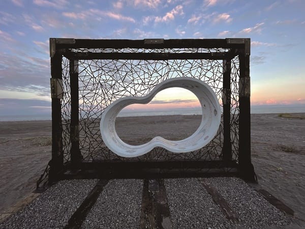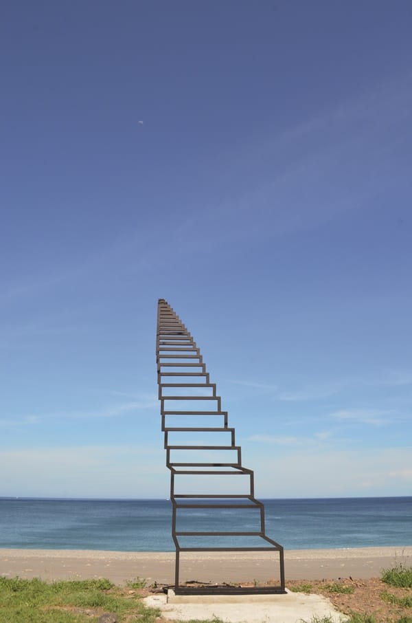 臺東擁有無敵的美麗海域,這些裝置作品在湛藍海天一色的襯托下畫面更美。其中在千禧曙光紀念園區沙灘看見以色列藝術家IdanZareski的作品《行走的意識》,大型巨人雕塑,與臺灣藝術家林子堯《潮.南》的藍白拖鞋裝置形成趣味的相互對話。金崙海灘上矗立原民藝術家哈拿‧葛琉的《方圓之間》,可以坐在作品內一起遙望海景。大鳥遊憩區設置臺灣藝術家邱尚為融入大鳥部落的傳說,創作出《太平洋的呼喚、相約南迴》。華源海灣以共創形式的美國藝術家Andres Amador的《協調的混沌》,以沙雕及疊石媒介與土地和在地人文產生情感連結。太麻里火車站旁平交道,有著名動畫灌籃高手的經典片頭畫面,同時站前的花園展出武玉玲創作的《我輕輕聽》,展現原住民的編織文化,一邊盪著鞦韆一邊傾聽山林與海洋演奏的音樂。來到大武鄉,沿著最美公路續行,大武南濱休憩區,南非藝術家Strijdom van der Merwe與臺灣藝術家周聖賢共創《通往天堂的階梯》,透過視覺錯位,隨著階梯的延伸,彷彿走進蔚藍太平洋中。尚武9420濱海休憩區,伊誕.巴瓦瓦隆的《呼喚南島的風》,安聖惠的《起點》,作品寓意希望喚起大家共同為「南迴醫院」催生,早早有個家。