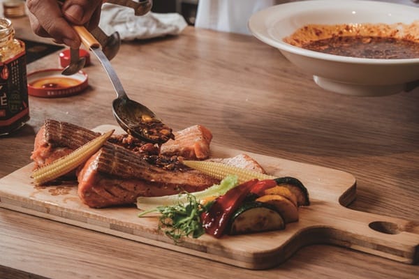 香煎鮭魚佐紅油堅果醬汁