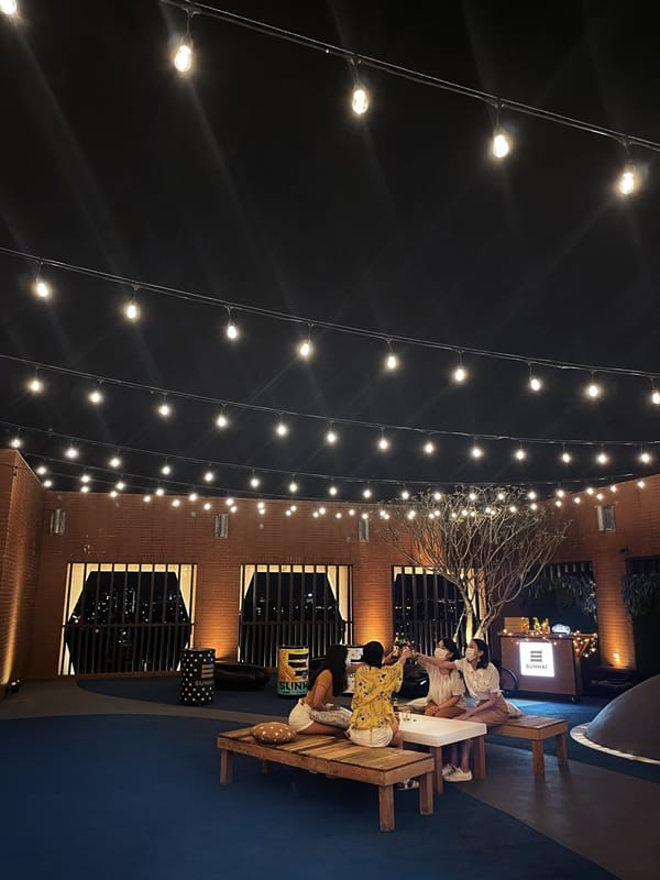 螢光派對之後前往頂樓期間限定的「泡泡星空酒吧」!先到室內的互動空間,與浪漫的粉嫩色調和多變的泡泡一起拍照打卡。接著到戶外區,同時擁有著靜謐平原、星辰夜空、漫天泡泡與好久不見的好友,是最愜意不過的人生享受了。在夏日薰風中搖曳,再一起敲一杯,將久居家中的憂慮和煩燥一起敲掉。