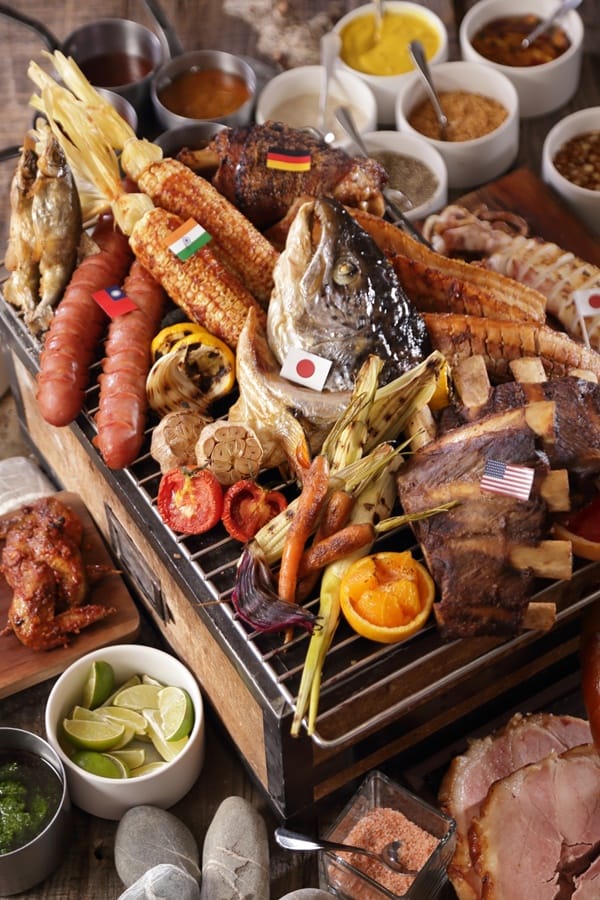 為即將來臨的中秋連假做好準備,柏麗廳也應景推出「全球夯肉宴」,以加量不加價的方式在自助餐檯上擺滿各式烤肉料理,以耐熱的火山石進行燒烤,展現出誘人烙痕與獨特的香氣,豐美肉品包括爐烤澳洲戰斧牛排、小戰斧牛肋排、德國豬腳、豬肋排、巨無霸香腸、蜜汁火腿,海鮮部分則有現流魚頭、長槍烏賊、三點蟹、每日現流鮮魚、旭蟹、櫻花蟹、牡蠣,另有來自台南玉井的珍珠玉米、新竹關西水蜜桃番茄、小農栽種的糯米椒、紫白洋蔥、南瓜…等蔬菜,健康與美味同時兼具。主廚團隊同時精選八國醬料搭配上述菜色,消費者可以選擇台式沙茶烤肉醬、日式照燒醬、泰式沙嗲醬、韓式辣味噌醬、美式BBQ烤肉醬、德式芥末醬、義式青醬、以及墨西哥莎莎醬。現場也加碼提供臺虎生啤酒及五款無酒精特調沙瓦無限暢飲,邀您與美食、美酒相伴,共度溫馨佳節。