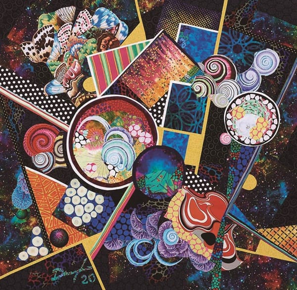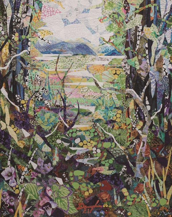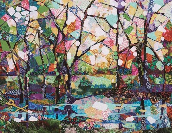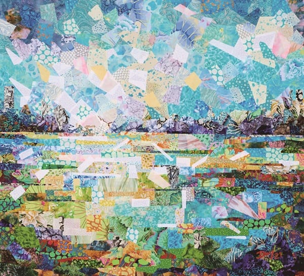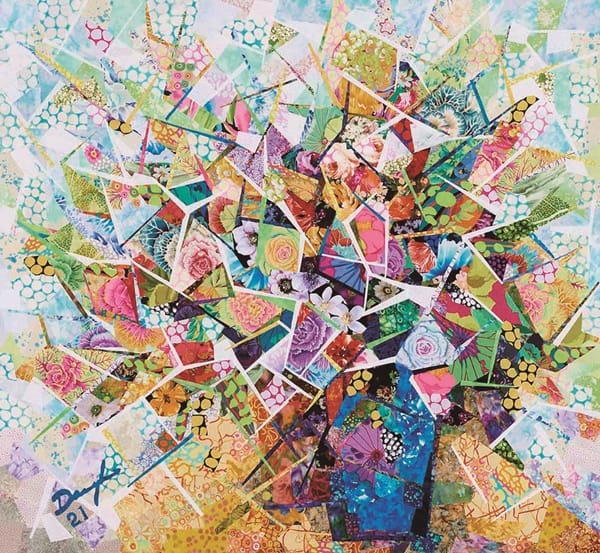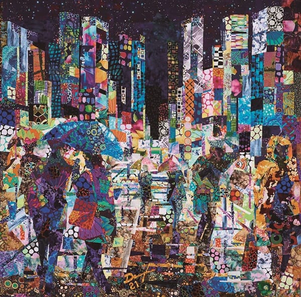 以作品《Spring Drizzle》為例,顏色鮮豔飽滿,這些花布碎片組成了都會生活的夜晚雨景,如不細看,實在無法想像是以布料拼接完成,正因為獨一無二的藝術天賦,讓劉棟在過去十多年間歐美邀展不斷,工作坊也經常人數爆滿,作育菁莪不遺餘力,創作與教學讓他在拼布藝術、纖維藝術領域成為先驅者。2017年劉棟應邀參加美國休士頓的「國際拼布博覽會」(Intl. Quilt Festival)特展,為此他花上一年的時間準備,完成迄今為止的最大尺幅創作——寬5公尺、高2公尺的《ABYSS》,描繪七彩萬千的海底世界,更體現了他身上那股令人敬佩不已的創作熱情,一如畢卡索創作《格爾尼卡》那般的創作能量。這兩年多來,由於疫情緣故,劉棟潛心在台創作,加上與晴山藝術中心的合作契機,作品的曝光度有明顯的增加,亦讓更多藏家看見如此精湛的藝術天賦,藝術需要分享,需要走入生活,今年Art Taipei的晴山藝術中心展位,絕對令人拭目以待。