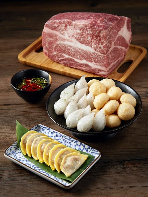 和牛火鍋吃到飽領導品牌-和牛涮,新推出「和牛餃丸三兄弟」,內餡選用油花絕美的極上和牛鮮肉,搭配特選魚漿、濃郁雞蛋皮、Q彈水晶餃皮,將和牛獨特醇濃的香味,濃縮在每顆丸餃內,一口咬下,特調辛香料與油脂甘甜在口中瞬間噴發,大口吃到飽的和牛火鍋,再冷的東北季風也挺住。