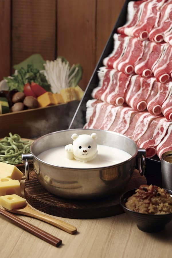 王品集團火鍋組「聚 北海道鍋物」、「青花驕」、「和牛涮」同步推出新菜色,網路口碑之星票選第一名的聚北海道鍋物,以人氣最旺的「札幌起司牛奶鍋」再升級!全新聚寶熊招財造型,為消費者客帶來好運!香濃奶香、富含膠質的豚骨昆布湯底,加上桌邊現刨起司服務,讓整鍋湯香醇濃郁、更添美味。深受饕客喜愛的雙人海陸聚,瀑布改版澎派升級,用整尾鮮魷、絕品大草蝦、鮮蝦等多款季節時令海鮮、加上330克肉類主餐,CP值爆表,滿足消費者前所未有的海陸雙響味蕾和視覺新體驗,再冷也能擁有好心情!