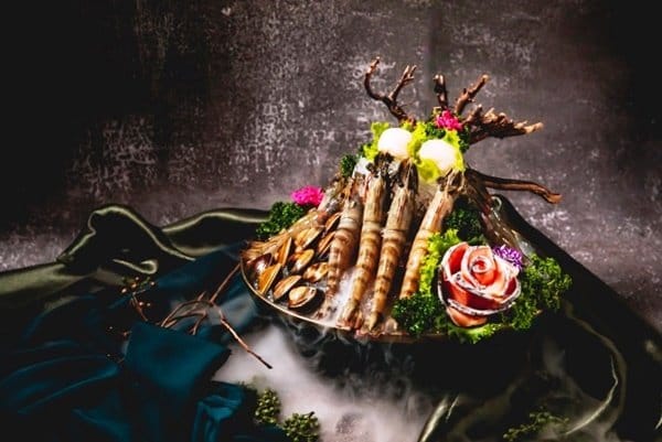 麻辣鍋天后-青花驕的「仙氣頂級海宴」,誠意滿滿準備了五種海鮮,包含兩款鮮美鮮蝦、新鮮蛤蜊,干貝,鮭魚,椒香麻辣的湯底加上厚實果香的青花椒提味,讓海鮮的美味和鮮度更加提升,讓人意猶未盡。「青花椒麻肩小排」是主廚特製滷汁精製,放入麻辣鍋中燉煮,每一口都充滿鮮麻椒香的暢快感,青花驕麻辣鍋絕對是秋天袪寒的最佳選擇。