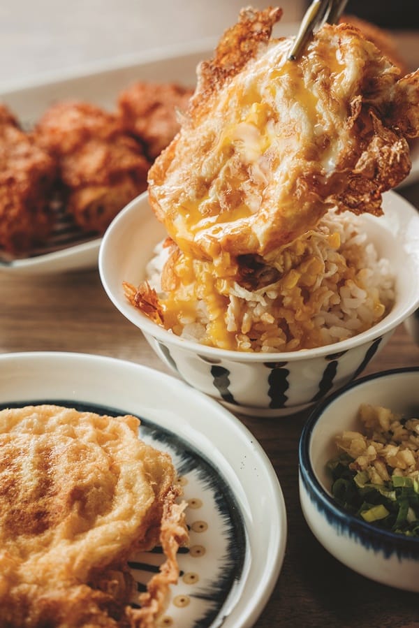 喜歡台式酥脆口感與創意吃法,大推油炸那個鬼鬼,香脆油條抹上海鮮漿酥炸,單吃外酥內軟,或是浸入湯汁中吸附精華,雙重滋味雙享受。阿明白糖炸雲朵,為翻玩傳統小吃白糖粿特製而成的雲朵小糰,一口咬下,香氣隨咀嚼釋放,放進牛皮紙袋搖晃或是直接沾裹花生糖粉,創意吃法更能搭配店內霜淇淋一起享用,好玩好吃好趣味!甜點與冷飲也很有誠意,可無限享用豆奶、牛奶糖、雪鹽花生3款口味的霜淇淋,配料有麵茶粉、黑糖雪Q、美祿球、黑旋風餅乾,好復古的兒時滋味,飲品有紅心芭樂冰沙、古早味酸鹹甜冰沙。