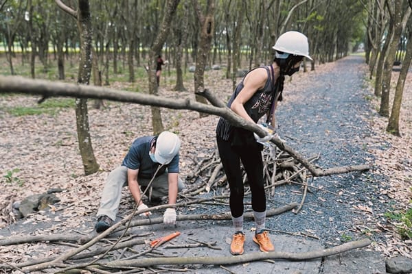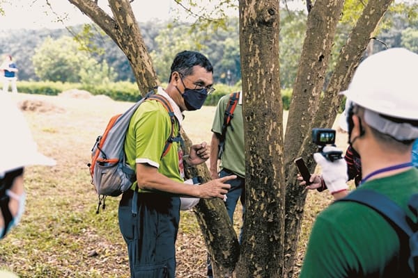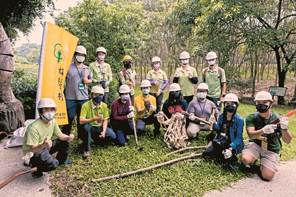 打造動物好宅工作假期是透過兩天一夜的遊程為居住在森林的野生動物構築舒適好宅。深具生態專業的曾昭雄老師及屏東林管處國家森林志工團隊為讓「林後四林」成為多樣性的動植物生態場域,特別依照森林的條件與特性適地適所設計這門課程。其中園區內大片光蠟樹林便是獨角仙的家,這期課程即是適宜親子共讀的獨角仙。透過為甲蟲打造溫暖的家,也讓參與的同學能學習更多關於甲蟲的知識。「牠們都是用垂直的方式啃食樹皮,這樣樹就不會死亡了!多餘流出來的樹木汁液也會變成其他昆蟲的食物,形成生態的良性循環。」曾昭雄老師指著獨角仙覓食過的光蠟樹痕說。「獨角仙幼蟲棲息地需要較多的水份與腐質層濕度66.67%的生態環境,我們就是要為獨角仙打造這樣適合牠們生活條件的家。」聆聽完老師活潑生動的講解,志工們挽起袖子,拿起鶴嘴鋤、十字鎬等工具,準備移除對甲蟲產卵孵化有礙的大小石礫。夥伴們在森林下撿拾的疏枝枯木,穿過碎木機化為木屑落地的瞬間,這片復育棲地就成為獨角仙溫暖的家了。春夏的繁殖期,獨角仙會在堆積的木屑縫隙裡產卵,剛出生的幼蟲便能就近食用木屑腐植質生長。