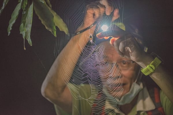 工作假期的夜晚還有奇幻的冒險夜觀,晚上夜訪森林的月光與早上森林瑜伽的晨光是截然不同的面貌,暗黑的森林更能發現林後四林動植物精彩的夜生活。貢德氏赤蛙陣陣響亮的蛙鳴聲與遠方傳來的貓頭鷹鳥鳴聲此起彼落,好不熱鬧。還有只在夜間開花綻放的穗花棋盤腳及結網捕食的鬼蛛等,這些迷人的夜色都只能在夜晚才能欣賞得到。