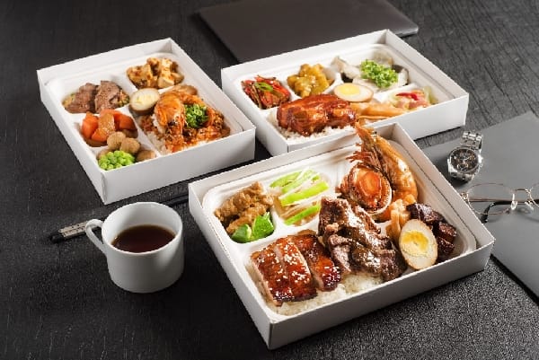 除了經典特色便當外,還有許多公司及活動主辦單位搶訂的商務頂級豪華便當,由粵亮廣式料理五星主廚特別設計的「粵亮御宴九品集」餐盒,每盒售價1,099元,嚴選龍蝦、鮑魚、牛小排等頂級海陸食材,以精緻的九宮格懷石餐盒呈現9種中式功夫料理,搭配精美擺盤及霸氣用料,一掀開餐盒就令人無比驚豔。另外,六福客棧也推出精緻餐盒系列,有「滬式醬燒無錫骨」350元、「明蝦&牛小排精選餐盒」450元、「豪華鮑魚海陸餐盒」550元,不只是商務活動,五星美味餐盒讓人也想外帶買回家享用。