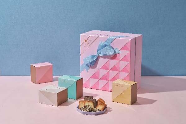 「薄餅」是法式餅乾經典之最(Langue de chat),在歐洲稱為「貓舌餅」,餅薄、脆、濃郁奶香、組織細膩、入口性極佳為薄餅的不敗特色。「伊莎貝爾」特別將包裝設計以粉紅色主色,透過深、淺比例%搭配,盒面選用帶珠光感的材質,細絲線條燙上古銅色金屬色,別緻打上粉藍蝴蝶結,從內到外呈現出簡約質感與柔美的氣質,讓人第一眼就愛上。