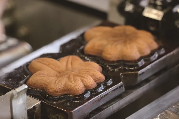 距離宮島棧橋走路不需1分鐘的宮島傳統產業會館,小小的門面卻蘊藏著宮島當地工藝品的集大成,踏上二樓之後也需要在老師的監督下,確實的洗了手之後才可以開始製作紅葉饅頭,即使毫無廚藝也不用擔心,老師會貼心地在旁輔助,按照老師的指示,將麵糊倒入烤盤中再加入餡料,每面烤個30秒就完成了,真的非常簡單!自己現做的紅葉饅頭實在是好吃極了!