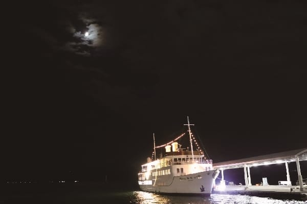 由廣島港出發,全程總共2個小時半左右的廣島晚宴郵輪「銀河號」,從上船到下船都是一場讓人興奮的饗宴,悠閒的航行在瀨戶內海上,邊享用法式料理套餐,邊眺望著廣島市與廿日市的城市夜景,接近宮島的時候,郵輪還會停下來,讓旅客欣賞嚴島神社大鳥居的打光秀。若您覺得郵輪的晚餐都不怎麼樣,那您可就錯了,招待過G7高峰會議的「銀河號」端出的法式料理實在讓人嘆為觀止,等不及服務人員的介紹只想趕快開動,印象最深刻的就是龍蝦法式濃湯,一口下去那海味立刻在喉間散播開來,龍蝦肉更是Q彈鮮嫩,完全沒想過水準如此之高的法國料理居然是在海上,教人敬佩!