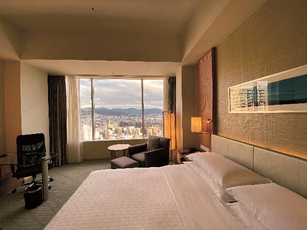 位於JR廣島站,在明亮挑高的大廳辦理入住手續後,來到20樓的俱樂部城景高樓層行政套房,每間房均在35㎡以上,房內有著喜來登一貫的奢華低調,透過偌大的窗看出去的是廣島帶著活力的街景。館內提供住客無微不至的服務與完善的商務休閒設施(如spa、健身房)。