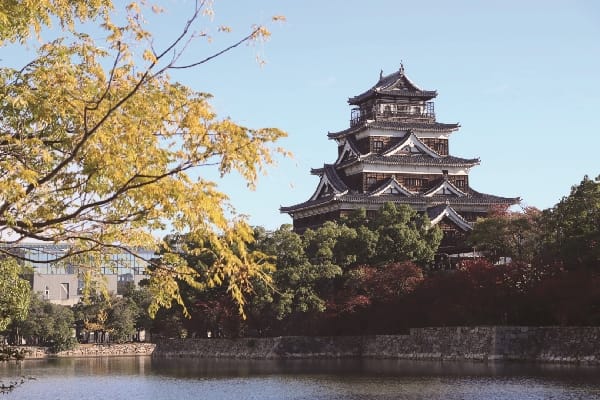廣島城,又名鯉城,原先的天守閣在1931年被指定為國寶,但在二戰的原子彈爆炸時被完全燒毀。1958年天守閣被再建,目前有資料模型等,成為了介紹廣島歷史的博物館。直至1994年,二之丸的建築物才被用木材重建完成。廣島城的紅葉也是大家所期待的。