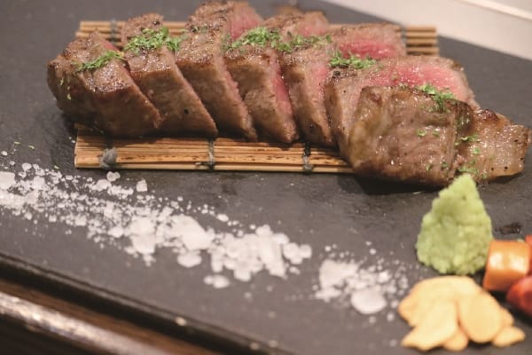 2013年開業的「雅」,店內時尚的空間設計,有包廂座位可以讓客人保有隱私的暢快朵頤。店內還提供A5等級的廣島和牛「元就牛」,在鐵板上將外側煎得金黃酥脆後,隨即會讓牛排離開鐵板靜置片刻,讓溫度均衡、完全鎖住肉汁的程度,每咬一口都感到幸福滿盈了口腔。