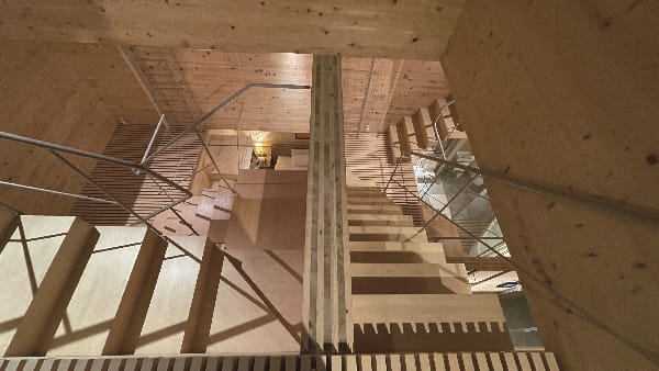 2019年10月開業的飯店,由關心環境問題的現代美術家Liam Gillick以東京為據點活動的建築家MOUNT FUJI APCHITECTS STUDIO一同打造,外觀類似貨櫃堆疊,看似簡單的建築,進到內部卻大開了眼界,上上下下的樓梯連接了不同的空間。外牆的氣象研究方程式,由2021年諾貝爾物理學獎得主真鍋淑郎所寫,進到裡面後,也掛了總數高達35楨的方程式掛框。木造的建築帶著溫潤的氛圍,透過地板的間隔,上看透過天窗仰望天空,帶著玩心與冒險的心情入住,是一大享受。www.a-and-a.org/liam-fuji