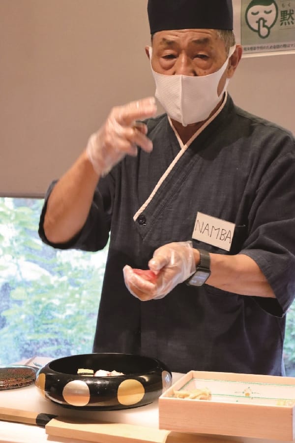 先聆聽體驗程序,再穿戴上圍裙手套,接著就是實作時間:利用食物樣品先練習一下醋飯的大小形狀,只見師傅以日文夾雜英文及豐富有趣的肢體語言帶領,學員們握起了壽司。學會了握壽司,正確的吃法也很重要!在師傅的介紹下,學員以正確壽司吃法品嘗自己捏好的壽司,最後還獲頒結業證書,短短的體驗時間,帶走的是滿足與笑容。