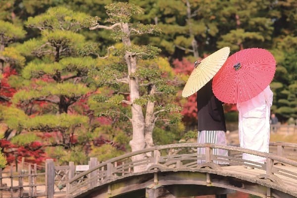 日本三名園之一的後樂園,後樂園屬於迴遊式的庭園,園內水流都與位居後樂園中央的澤之池相通,春有翠綠、夏有杜鵑花、櫻花和蓮花,秋有紅葉,一年四季都可以看到不同風貌,園內可體驗穿日本傳統和服在充滿日式氛圍的庭園裡拍照打卡。在這裏還可以一邊划皮划艇,一邊欣賞岡山後樂園和岡山城哦。
