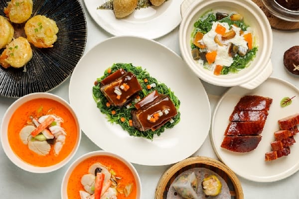 米其林餐盤推薦餐廳–晶華軒為情人們準備的是六道式的廣東佳餚,內容包括由招牌蜜汁叉燒、明爐燒鴨、北菇蒸燒賣 、金珠鹹水餃、江南素菜餃組成的晶華小滿漢,鮮香Q彈的柚子蜜澳洲帝皇蝦球,滋味醇厚的柱侯醬燜牛肋骨,清甜爽口的蒜子金銀蛋莧菜,餐廳招牌大菜鱈蟹西施泡飯,以及造型趣味十足的巧手蘑菇流沙包,價格5,280元。日式鍋物料理餐廳–三燔本家推出的雙人海陸火鍋套餐內容有美國頂級無骨牛小排、波士頓龍蝦、蛤蜊、魚片、生蠔等豐美涮料,季節時蔬皿、特色獨具的胡麻以及橙醋沾醬,還有頂級昆布熬煮的高湯,每套價格4,980元。