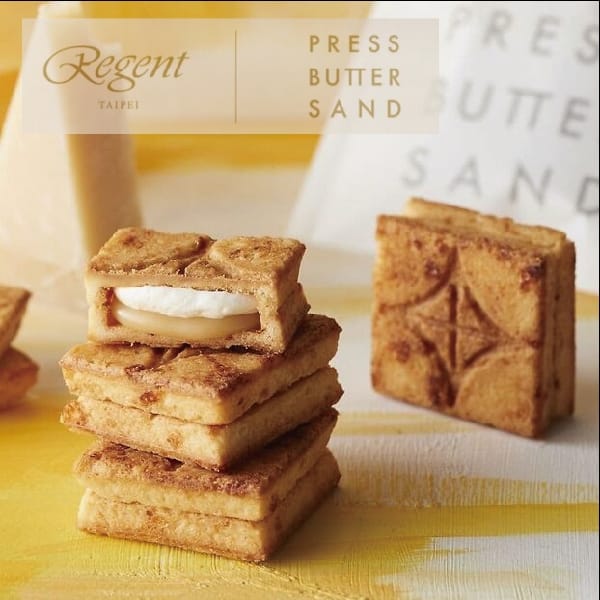 預訂套餐贈送的情人節好禮是來自日本東京、榮獲最佳伴手禮頭銜的PRESS BUTTER SAND與晶華聯名合作的餅乾禮盒,PRESS BUTTER SAND是以烘焙焦糖奶油夾心餅乾出名,採用「熱壓烤製工法」讓成品沒有多餘的油脂,濃郁的天然奶油風味夾在兩層酥脆的餅乾之間,展現最完美平衡的口感,此次聯名推出的起司口味是使用帕瑪森、埃丹和巧達三種起司調和,鹹甜共冶出絕佳滋味。