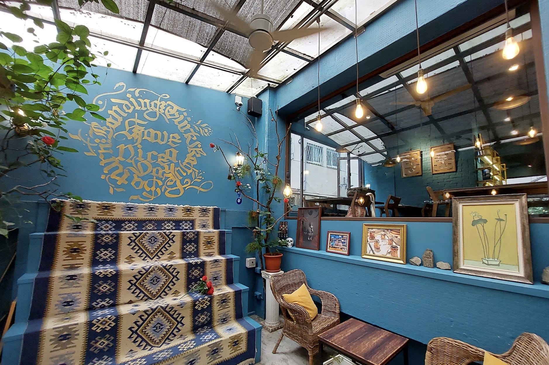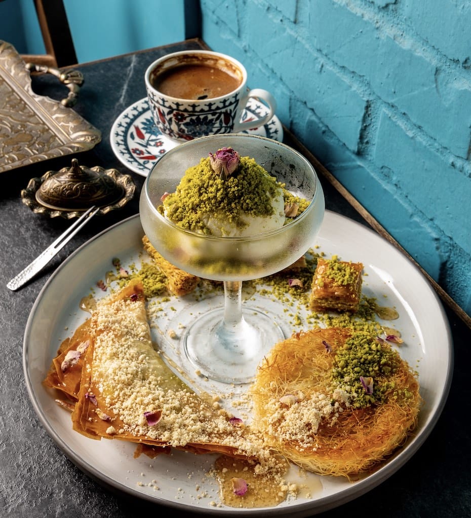 就在永康街巷弄內,有家很特別的異國風情餐廳「登陸土星」,店主本身是學習 民族音樂與文化藝術出身,特別主打有別於一般精品咖啡的土耳其咖啡,為此更多次遠行土耳其,以田野調查的態度與思維,深入探訪各大咖啡館、甜點店,帶回更具深度與力道的咖啡文化。空間陳設都出自店主的發想創意,以「復古未來主義」概念延伸,想像整個故事場景帶有科技與復古反差的美感與奇幻感覺,以土耳其藍為主色調,一入店內,土耳其地毯很吸睛,大家喜歡坐在階梯上拍照,如置身中東國度,後院大型的獨角獸造景,也是很熱門的拍照焦點。 傳統的土耳其咖啡是將咖啡豆磨得很細,倒入厚銅咖啡壺(Cezve)注水後直接在高溫的砂子上燉煮,掌握溫度的變化,呈現壺萃咖啡文藝復興,造就一杯呈現壺萃咖啡文藝復興,充滿香氣飽滿、口感濃郁厚實、層次豐富的土耳其咖啡,再吃一口手工製土耳其軟糖、無花果、核桃真是絕配, 而喝完後杯裡所沈澱的咖啡渣還可以占卜,很有意思(專人諮詢需另外收費)! 土耳其人喜歡吃甜點,招牌必點果仁酥 Baklava、金絲果仁酥、薄果仁酥、庫內 費組合的甜點,再加上一杯灑滿新鮮翠綠開心果的冰淇淋,酥脆口感又不會太甜膩,真的讓人吃得好開心! https://www.facebook.com/ciaomagazinetw/posts/5219507331497136?__cft__[0]=AZWBpnLozEQ-j1bZ7G62f0zUbsMXBOc3IwWfoIHIlqbs8t-sfPs-DQ4stn7JF7La3nBvkpbfSbY1Zt0xeJrmrG2YWVedFC4i2r8un1SHIYoT8KdKsIIK0ZWYg0Eu3H-CDrLCZA6kJ-YRf5qLdD1gljrO&__tn__=%2CO%2CP-R