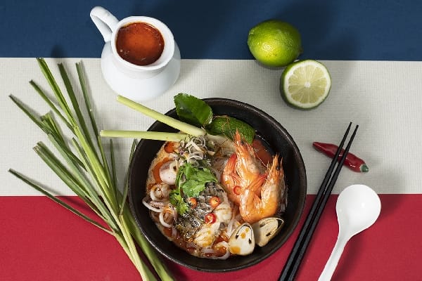 深受國人喜愛的旅遊勝地泰國,是個美麗富饒的農業國家,也是眾所皆知的美食天堂。泰國菜的調味料花樣繁複,常用辣椒、咖哩、椰奶、打拋葉、泰國青檸等天然佐料賦予食材獨特的濃郁香味,一道菜餚便能嚐盡酸、甜、辣、鹹等多層次風味,關鍵就在這充滿魔力的調味功力。來自泰國的飯店行政主廚陳帝昕(Thitisorn Amatasin)特別嚴選多道經典泰式料理,囊括海鮮控最愛泰式檸檬魚,先將香茅、南薑及蒜塞入魚肚中,並以大火蒸熟,再將以辣椒、香菜、蒜末、魚露及檸檬汁混合的醬汁淋上,擁有酸、香、辣多層次口感的佳餚美味上桌!泰式經典酸辣湯-冬蔭功湯麵,將南薑、香茅、檸檬葉、辣椒醬、魚露均勻打成靈魂基底醬,接著放入鍋中炒出香氣,再加入蝦湯、蔥、香菇、香茅等食材煮滾,最後放入檸檬汁、白胡椒等調味,酸酸甜甜的湯頭立刻開胃,食慾大開。另有鳳梨火腿炒飯、泰式鯖魚炒飯、斑蘭葉炸雞、青木瓜沙拉及紫米布丁等經典佳餚,給食客們來一場猶如置身泰國度假的泰式饗宴。