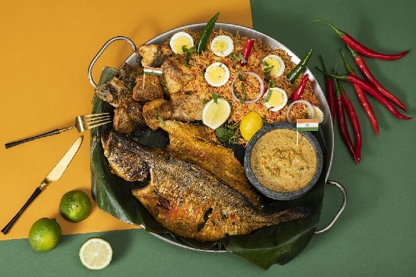 印度幅員廣大,隨著不同地區的氣候、歷史、種族及宗教信仰,造就印度菜派系非常多元,進而創造出各式各樣的菜色。特別的是,因應大量吃素人口,幾乎所有印度菜餚都會將豆類入饌,如紅扁豆、鷹嘴豆及樹豆等,不但增添豆類濃郁口感,同時也為素食者補充蛋白質,是重要的營養來源。來自印度的主廚羅瓦特(Shiv Rawat)及拉克什(Rakesh Semal)力推家鄉美食烤魚印度香飯,金黃酥脆的烤魚搭配香香辣辣的咖哩及印度香飯,印度香飯的美味來自於大量香料如酥油、月桂葉、香菜、薄荷葉等,再加入薑黃使之呈現金黃色澤,味香色美;國民小吃印度香料炸蔬菜,又稱印度天婦羅,將蔬菜如花椰菜、秋葵、茄子等及各式各樣的香料如辣椒粉、香菜等,包入鷹嘴豆麵糊中,散發出誘人香氣的炸餡餅即刻上桌!