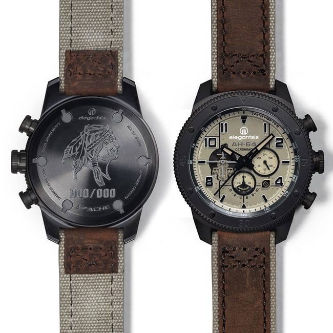 在本月登場的陸航阿帕契特別限定款腕錶,配色以AH-64在波斯灣戰役中運用的沙漠風暴塗裝為靈感,錶圈具有巧思地,還原機體板金的經典風格,賦予錶款粗獷勇武的靈魂,面盤設計體現愛樂時一貫忠實還原軍種基因的職人堅持,整體以阿帕契駕駛艙為核心靈感,面盤延續錶圈的機甲風格飾板,搭配分別以阿帕契徽飾、水平儀與轉速錶為視覺聚焦佈局的三環計時圈,同時搭載飛行錶經典時標與飛行風格鏤空指針,為錶款寫入精密不凡的能量風采。