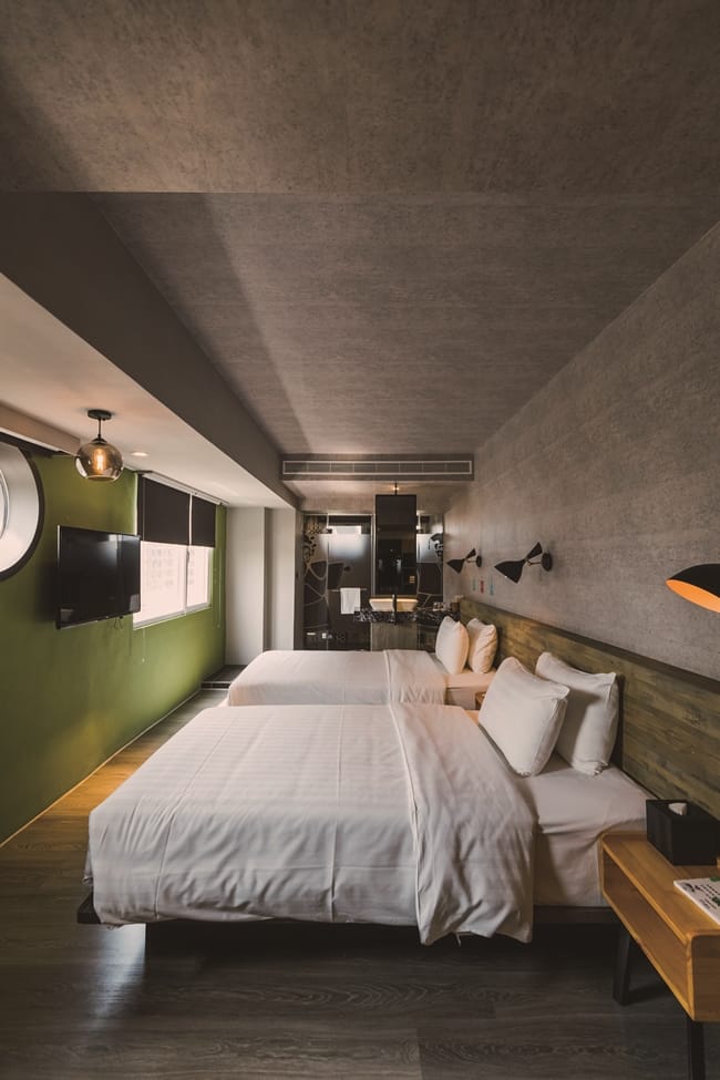 以生旦淨末丑的Q版布袋戲人偶角色元素貫穿房型整體設計,更是旅店另一特色,讓旅客從中認識各角色的鮮明個性,「生房型」以鐵件帶出男性風格,「旦房型」以溫潤木色展現女性柔美特質,「淨房型」以細緻馬賽克呼應武將大花臉扮相,「末房型」以大量的暖色系體現代表老年從容態度,「丑房型」以灰黑色系花磚意旨詼諧意象。另外值得推薦,旅店推出獨家品牌的〈古坑好咖啡〉、〈春秋好茶〉,更是最受歡迎的伴手禮。 設計感同樣表現於餐廳,一樓的「Sunny Q陽光公主餐廳」充滿華麗童話風格,去年換上新妝,Sunny Q甜美公主和超萌小動物、小精靈相伴。近期早午餐更換新菜色,中式清粥小菜,西式的巧巴達、潛艇堡、口袋餅,以及港式點心、菠蘿堡等六道套餐,入住即可免費任選享用。午晚餐以創意義式料理為主,有義式燉飯、義大利麵、經典排餐、Pizza,鍋物及各式特調飲品等,豐富多元、滿足味蕾。宵夜場也不寂寞,頂樓10樓的「沐砌-Moon Chill SkyLounge」天台酒吧,位居虎尾最高視野,品飲微醺滋味佐夜色,這小鎮風情更迷人。