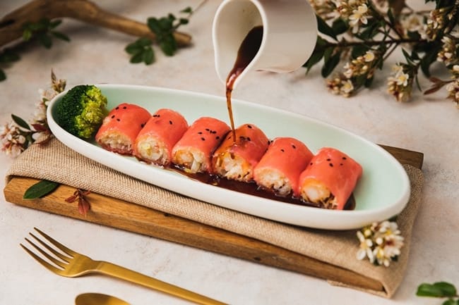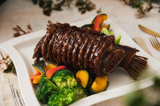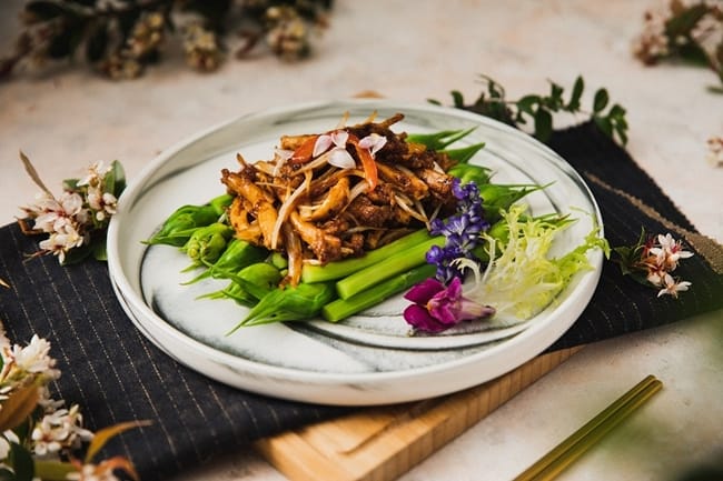 春天是花的季節,許多人都會到郊外賞花,向來以粵料聞名的青雅中餐廳,即日起祭出「春饗花宴」也把美麗的花兒入菜,讓饕客們同時擁有視覺與味覺雙重享受。親友聚餐首推6-8人份的「桂花紅酒稻草牛」,選用Choice等級帶骨牛小排並以嘉南平原乾稻草綑綁,加入新鮮桂花及紅酒醬汁燉煮,特製的老滷汁熬煮1-2小時入味而成,肉質鮮嫩帶有微微桂花及稻草清香,前置作業費工費時,需提前一日預訂。「XO醬晚香玉筍豬眼眉」特選台灣在地豬種,一頭豬僅兩附珍貴的豬眼眉,搭配素來有「夜來香」封號的晚香玉筍,最後加入鹹香微辣的XO醬大火爆炒,外脆內Q,成為超涮嘴的白飯殺手。若想品嚐創新粵菜,絕對不能錯過「泰式紅咖哩蝦球煲附法國麵包」,主廚每日現剝新鮮蝦球,再加入自製紅咖哩醬、椰漿、鮮奶油等南洋佐料調味,搭配軟法麵包,酸辣帶勁又有飽足感。「櫻花漬梅子雞」選用台灣在地放山仿土雞腿,並加入獨家醬料醃製酥炸,加入日本櫻花冰梅醬及脆梅調味,清爽不膩口。「蓮花鮑魚濃雞湯」以金華火腿、大骨、老母雞煨煮8小時製成濃湯基底,並放入香水蓮花增添香氣,再加上鮑魚、干貝等高檔食材,豐富食材與湯汁完美交融,鮮美馥郁的層次與口感,提供了視覺與味覺兼具的美食體驗。最後,每桌必點的港點也推陳出新,「春風如意腸粉」以紅麴加入腸粉漿內,搭配米網皮、洋地瓜、手剝蝦仁等豐富餡料,甫上桌就讓饕客爭相拍照留念。
