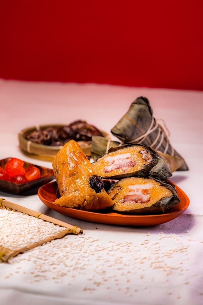 以廣式料理聞名的金龍餐廳推出老饕的最愛、同時也是媒體評比常勝軍的「金牌裹蒸粽」。由餐廳主廚親自調味、監製,有著荷葉的香氣、餡料豐富、重達750g±5%體積驚人的「金牌裹蒸粽」,遵循嶺南肇慶古法、嚴選糯米、台灣優質豬肉以及高級黑松露醬、頂級紅燒鮑魚、干貝、鴨肉、栗子、蓮子、鹹蛋黃等高貴食材嚴製,溫火熬煮8小時,打開外層荷葉後香氣四溢,每一粒米都充分吸收食材香氣,每一口都是驚喜。