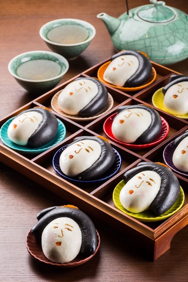 「迷你貴妃壽桃」是由晶華酒店旗下位於臺北故宮博物院旁的故宮晶華廚藝團隊所創作,創意發想來自於唐人宮樂圖,這幅保存於臺北故宮博物院的名畫,描繪了宮中女眷圍着長桌宴飲行樂的場面,畫中貴婦挽著髮髻、穿著華服,展現雍容華貴的姿態,故宮晶華設計之初,就以這一幅畫為一樓左面大廳的主視覺,期望前來用餐的客人,都能感受古人宴飲行樂的美好。 主廚團隊取畫中貴妃們的造型,將麵糰加入竹碳粉捏成貴妃們的髮髻後備用,原有的白色麵糰則在包入奶黃、豆沙、芝麻等蜜料內餡後捏成鵝蛋臉型,之後要小心的在鵝蛋臉上烙印精緻的五官、黏上黑色的髮髻麵團、最後綴上以澄粉燙熟做成的半透明髮簪,放入蒸籠蒸透即完成此道小巧可人的「迷你貴妃壽桃」。成品有著精巧的造型與甜而不膩的滋味,貴妃們臉上可愛Kuso的表情更是讓人莞爾,適合全家歡樂品賞。